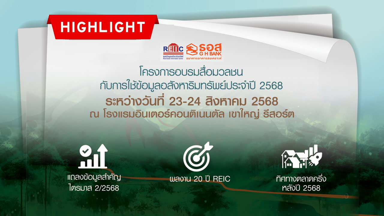โครงการอบรมสื่อมวลชนกับการใช้ข้อมูลอสังหาริมทรัพย์ ประจำปี 2568 - สองทศวรรษศูนย์ข้อมูลอสังหาริมทรัพย์ : การพัฒนาเพื่อความยั่งยืนทางเศรษฐกิจและการแถลงข่าวประจำไตรมาส 2 ปี 2568
